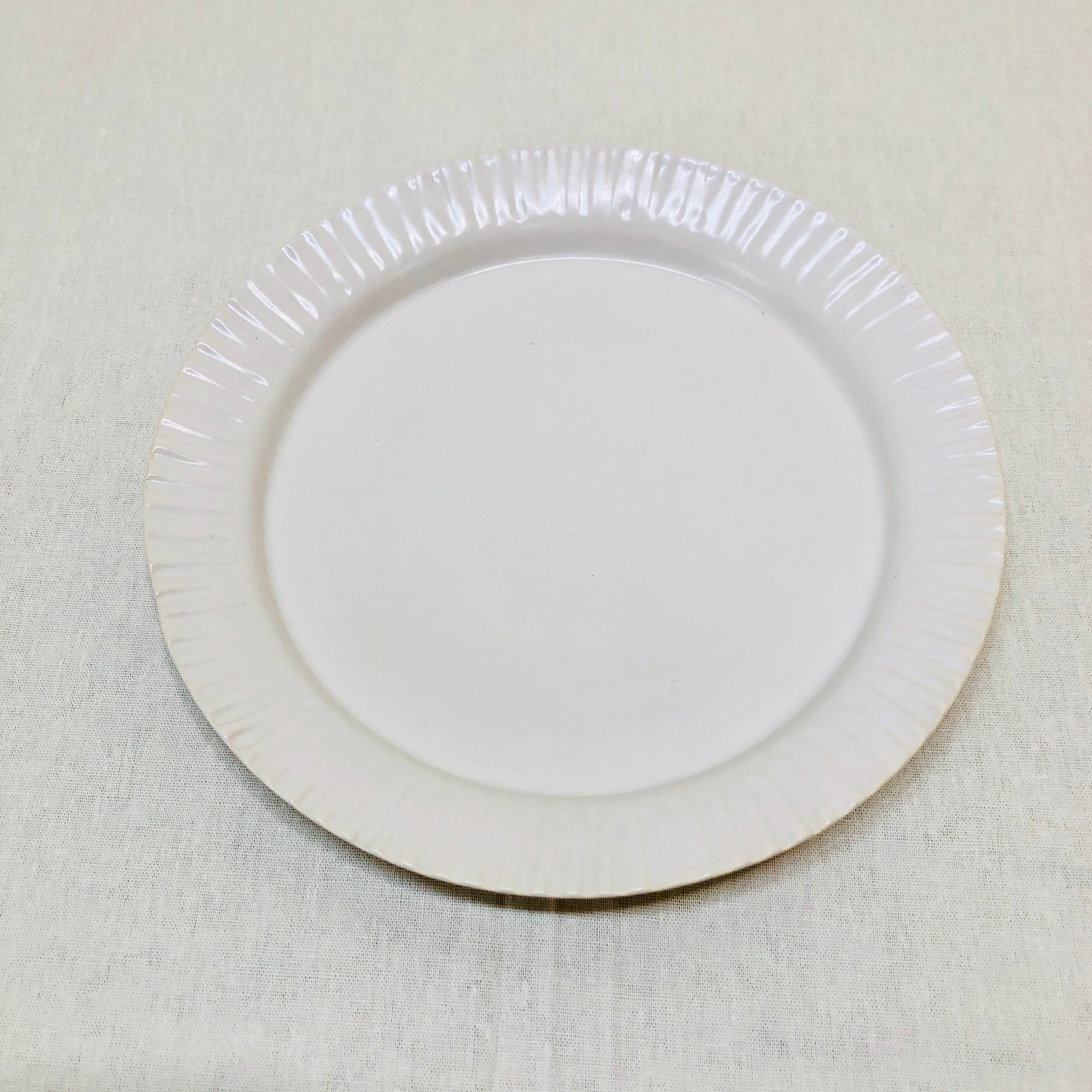 有田焼の磁器土と唐津焼きの白い土をブレンドして作成し、オリジナルの白マット釉を施した作品です。軽くて衝撃にも強く、電子レンジや食洗機も使用できます。